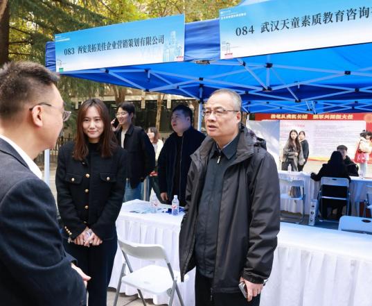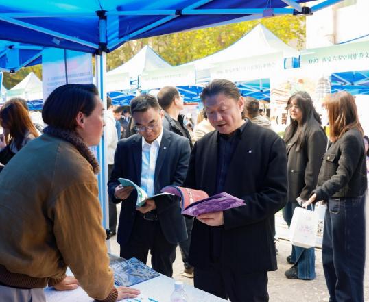 为深入贯彻党的二十届四中全会精神,落实教育部关于高校毕业生就业工作的决策部署,根据教育部2026届全国高校毕业生“金秋启航 ”校园招聘月相关要求,10月31日, 由陕西省教育厅主办的陕西省2026届普通高校毕业生艺术类联盟秋季招聘会在西安美院举办。西安美院党委书记丁巨涛、院长朱尽晖、党委副书记邱必震在现场与用人单位及毕业生进行亲切交流。