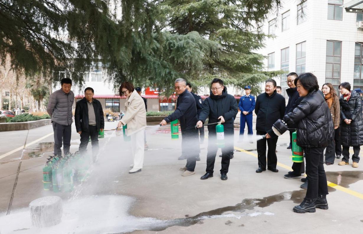 为进一步强化校园消防安全意识,提升师生应急避险与自救互救能力,我校于12月23日下午,组织开展以“强化消防安全意识 筑牢校园安全防线”为主题的消防实操实训演练。院长朱尽晖、党委副书记任晓峰、西安市公安局文保支队警官许英杰,雁塔西路消防救援站站长兀林旭出席演练活动。
