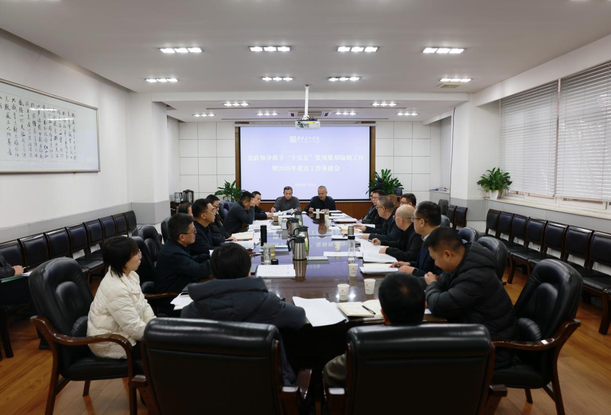 丁巨涛强调,要深入学习领会中央和陕西省相关文件精神,以高度的主人翁姿态推进“十五五”规划编制各项工作。他提出五点明确要求:一是规划编制各个版块牵头部门和分管校领导要充分利用寒假时间,持续加强规划研讨与编制工作,确保规划编制按照既定的时间进度进行;二是在编制和完善规划过程中,要认真吸纳各层面意见建议和规划编制有关单位经验做法,切实提升规划编制质量;三是规划编制工作小组办公室要统一编制文本体例,确保各版块规划格式规范、要求一致;四是开学后,组织开展假期规划编制成果研讨会,进一步推进此项工作,广泛凝聚智慧力量;五是要将规划编制与 2026 年重点工作紧密结合起来,确保十五五起好步,开好局。他同时指出,规划总体目标设定需全面涵盖各版块核心内容,要统筹好强制性指标与发展性指标的科学配比,做到具体指标数出有据、目标路径务实可行,以高质量规划引领学校各项工作落地见效。