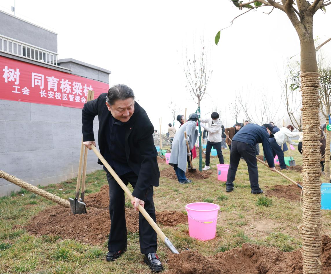 三月春意浓,巾帼绽芳华。为庆祝第116个“三八”国际劳动妇女节,恰逢第48个植树节,校工会举办校园植树活动暨“奋进十五五·巾帼启新程”纪念“三八”国际劳动妇女节系列活动,院长朱尽晖,党委副书记任晓峰、邱必震,副院长张浩、武小川、雷晓辉等校领导参加了植树活动。