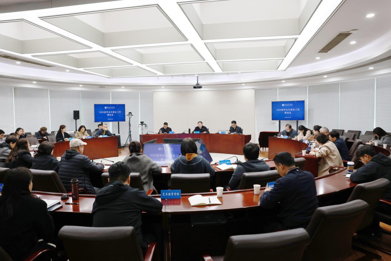3月13日下午,西安美院在笃行楼二楼圆厅会议室召开2026届毕业生就业工作推进会。院长朱尽晖、副院长武小川出席会议,会议由党委副书记邱必震主持。